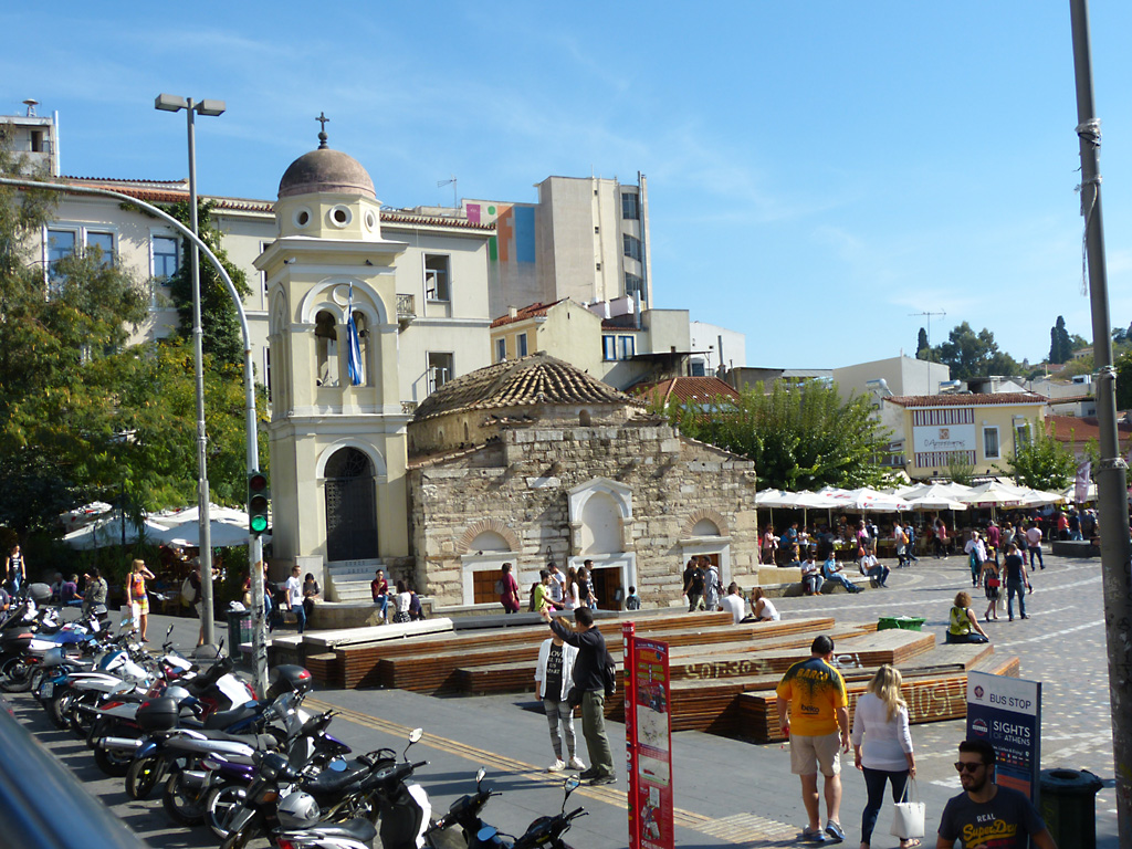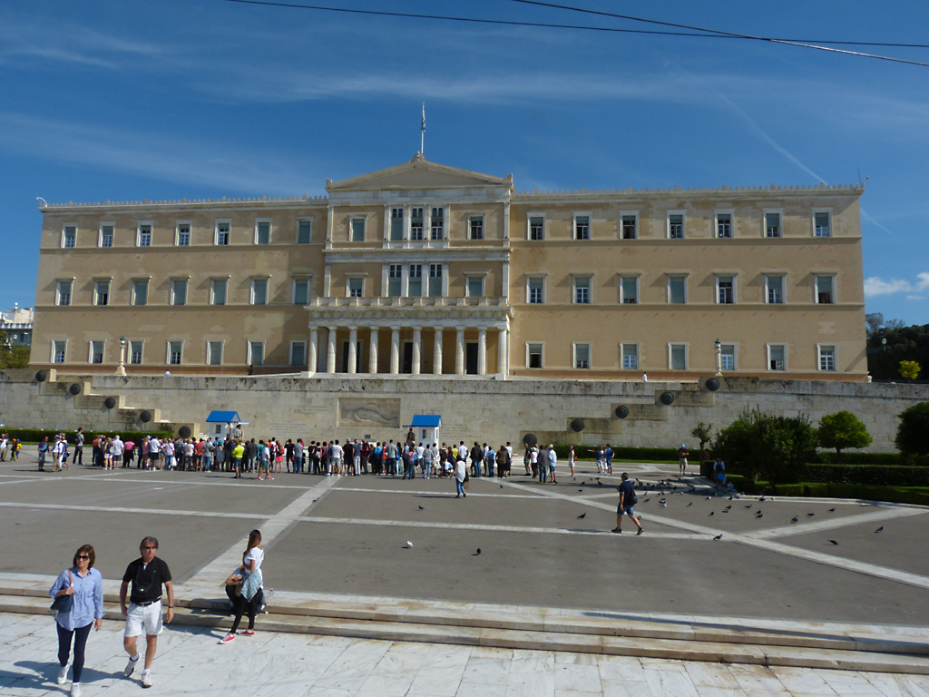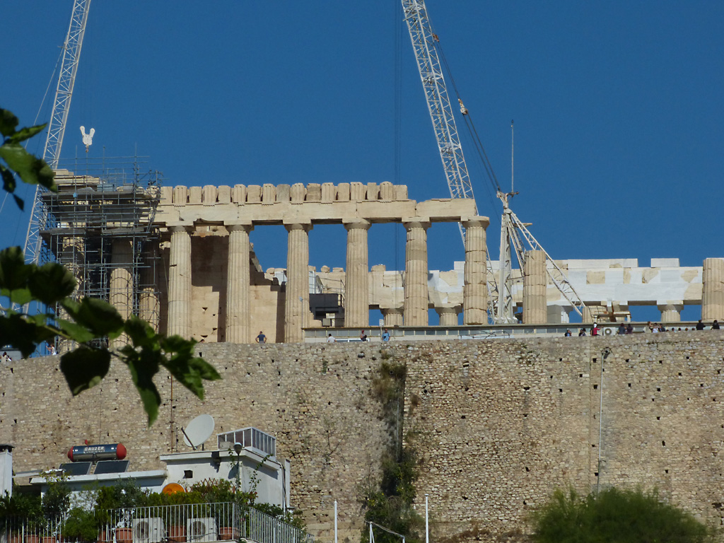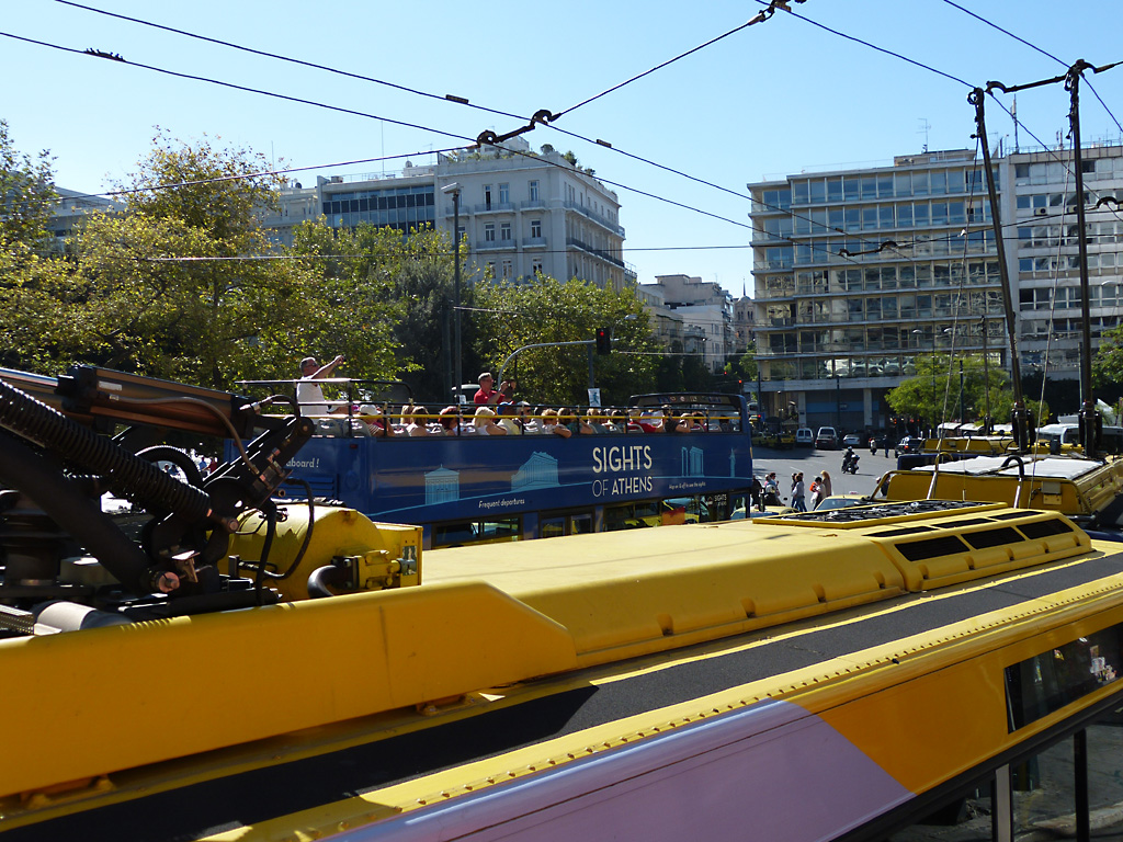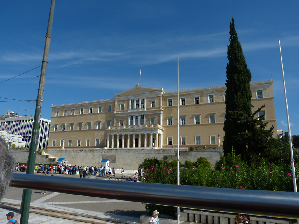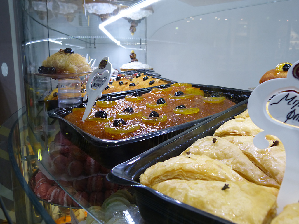 Jeri had arrived earlier and was out touring already as you can see from her gallery below. We got together later, had dinner at a local, very Greek, bistro. Bought goodies at a gelato shop. Bob bought a block of halvah that lasted him most of the trip. We were treated to a demonstration on our way back to the hotel. Then finished the day with cocktails in the rooftop bar of the Grande Bretagne.