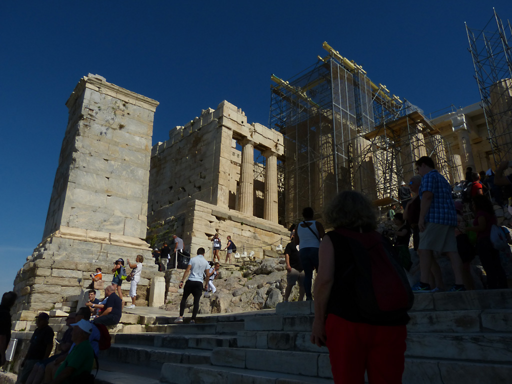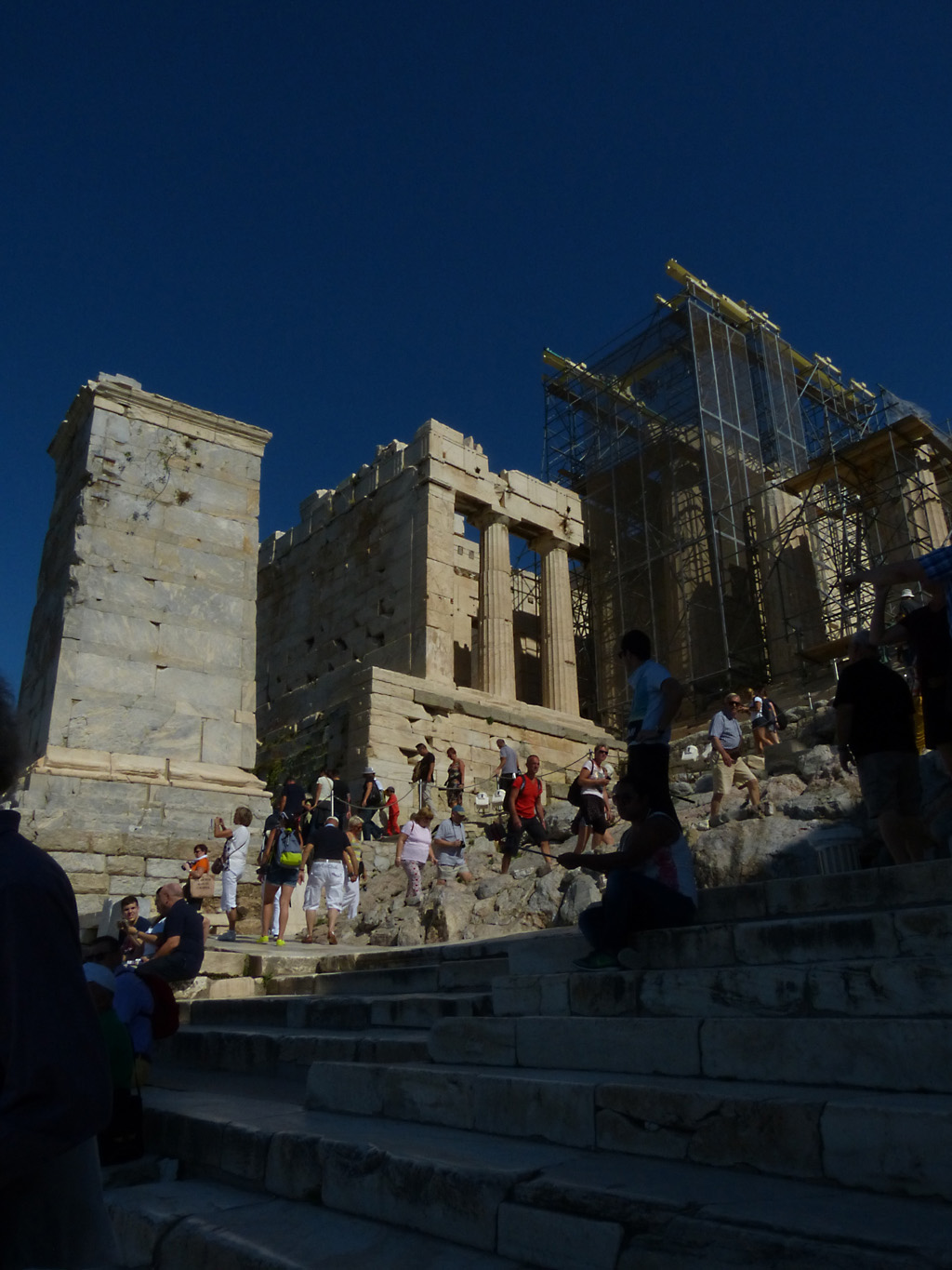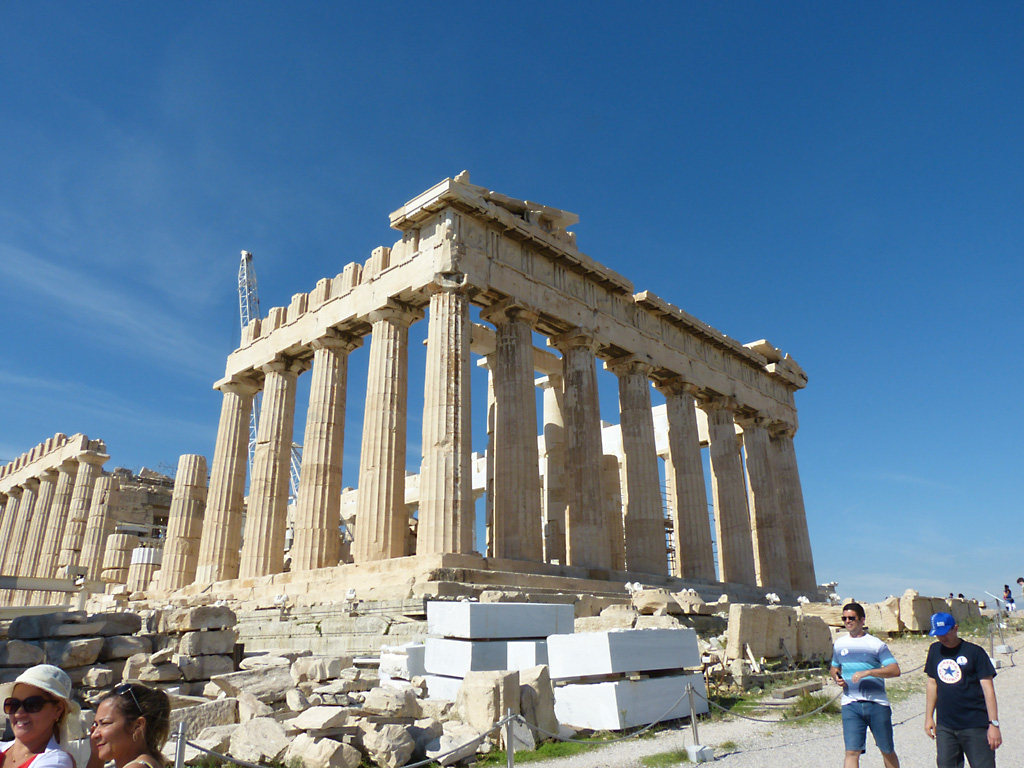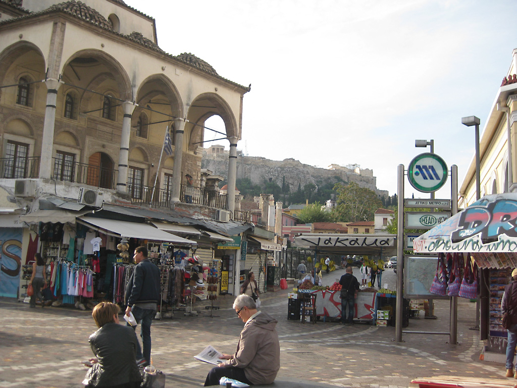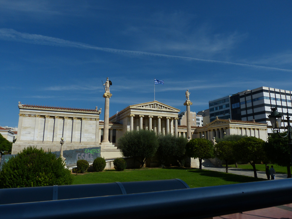 Jeri had arrived earlier and was out touring already as you can see from her gallery below. We got together later, had dinner at a local, very Greek, bistro. Bought goodies at a gelato shop. Bob bought a block of halvah that lasted him most of the trip. We were treated to a demonstration on our way back to the hotel. Then finished the day with cocktails in the rooftop bar of the Grande Bretagne.