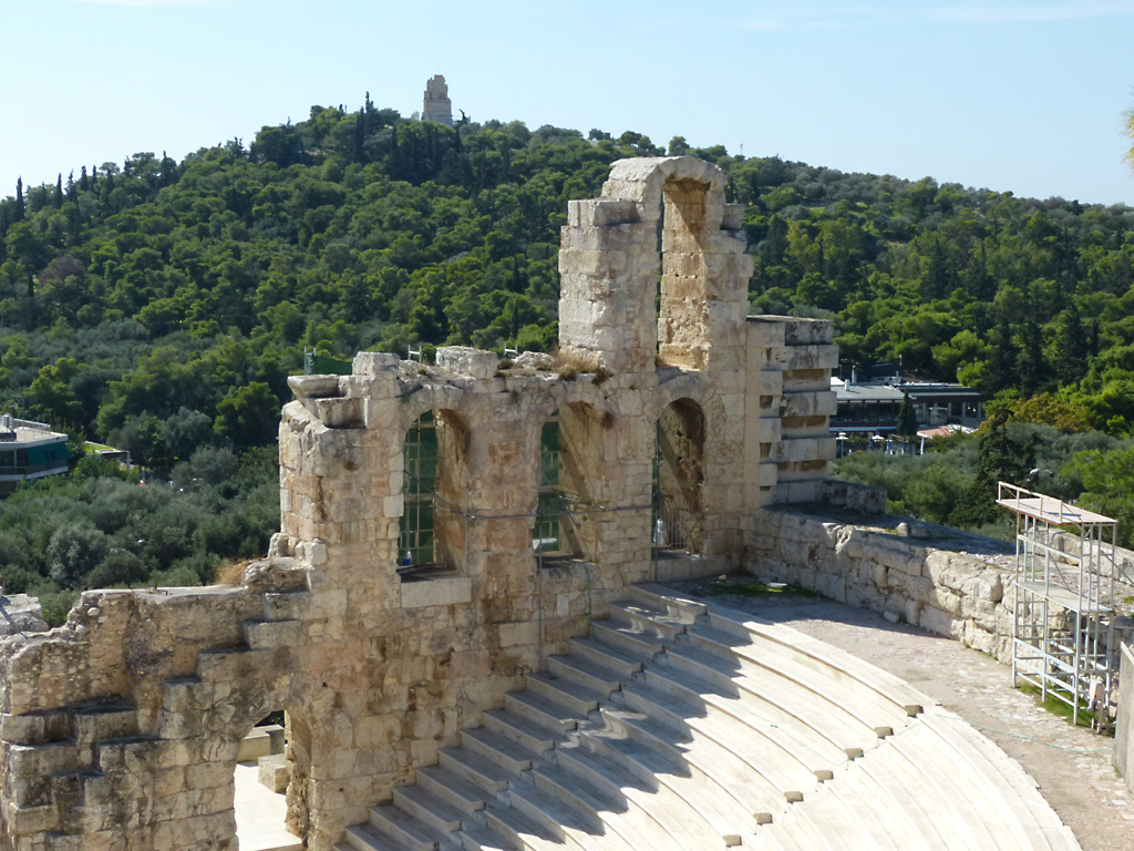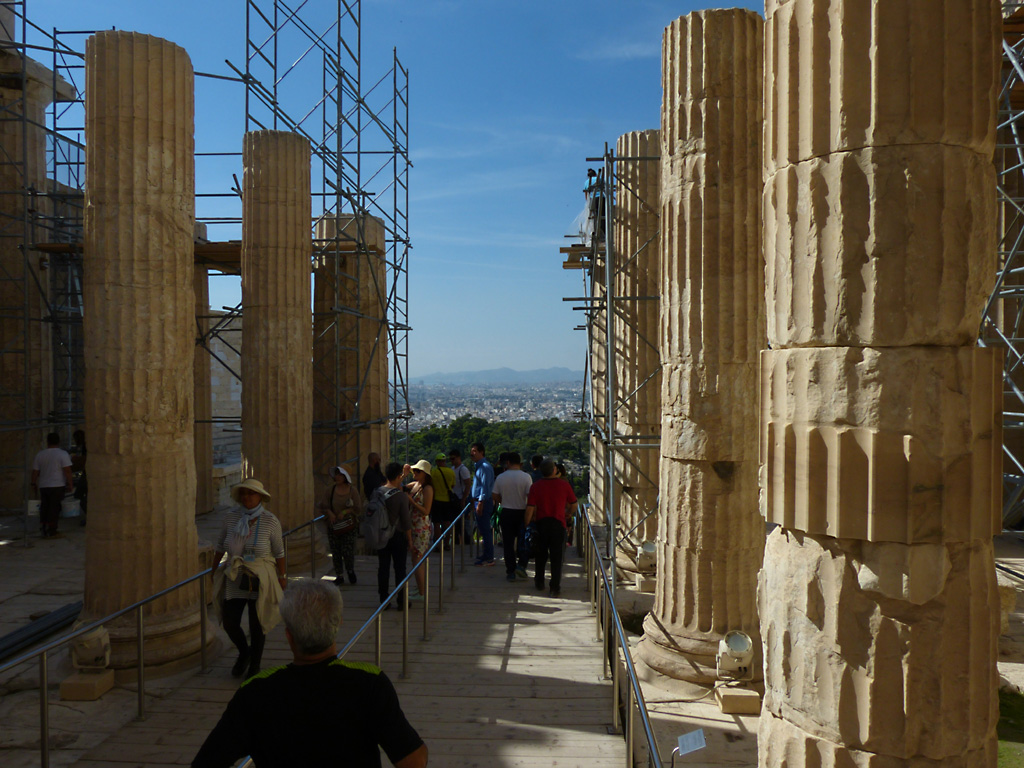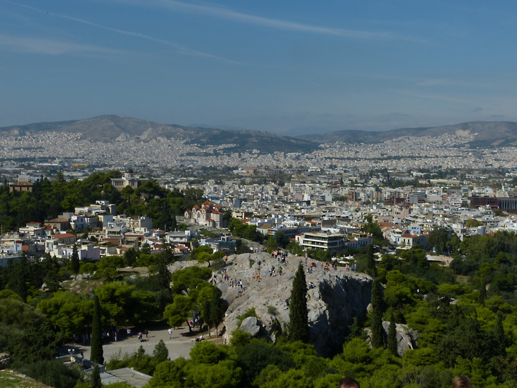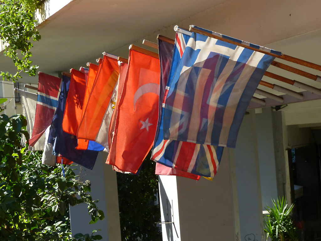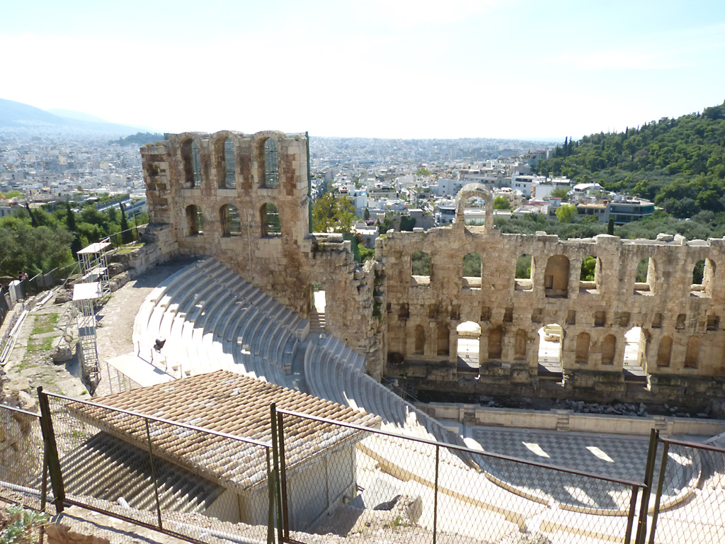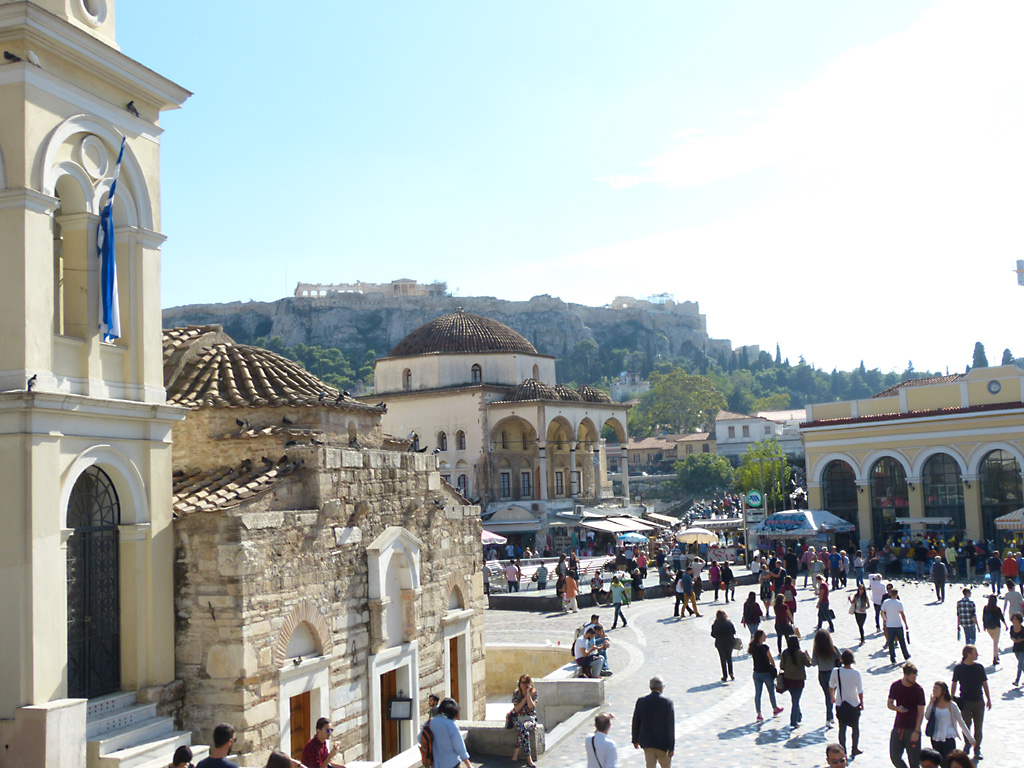 Jeri had arrived earlier and was out touring already as you can see from her gallery below. We got together later, had dinner at a local, very Greek, bistro. Bought goodies at a gelato shop. Bob bought a block of halvah that lasted him most of the trip. We were treated to a demonstration on our way back to the hotel. Then finished the day with cocktails in the rooftop bar of the Grande Bretagne.