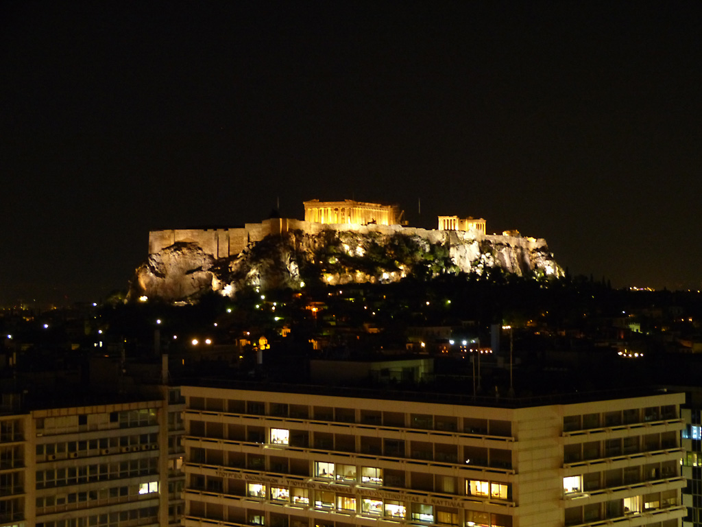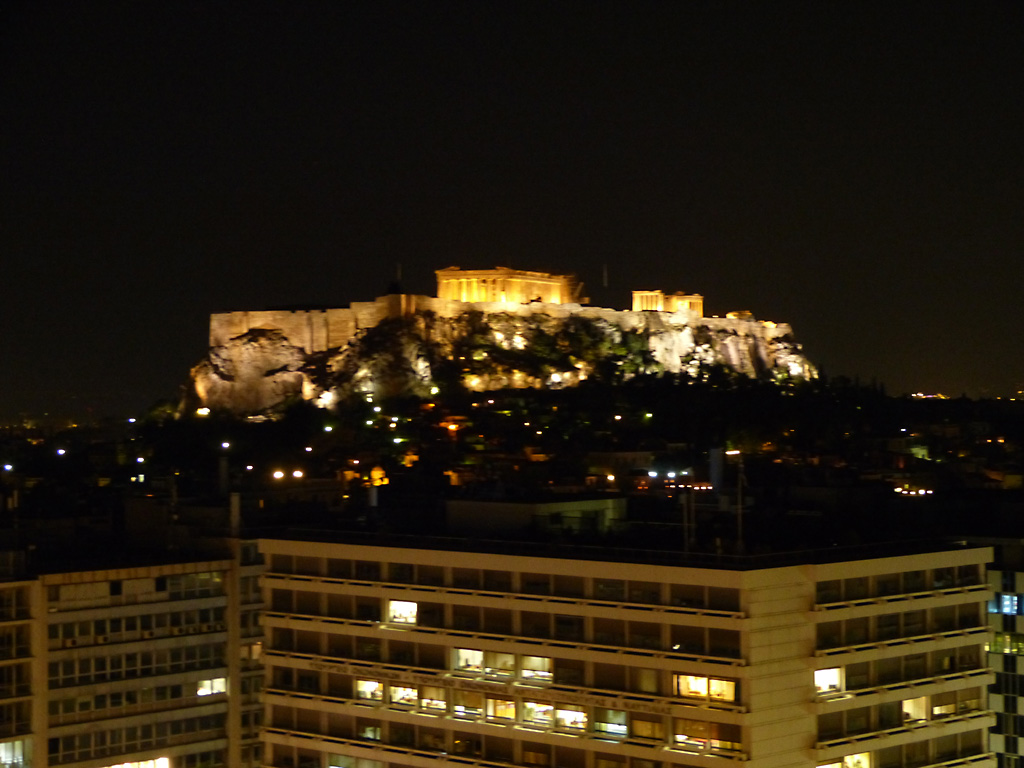 We arrived in Athens today after a lengthy but hospitable flight on Lufthansa and an invigorating romp through their Frankfurt terminal to change planes. We stayed at the Hotel Grande Bretagne which provided us with a Signature Travel Network upgrade to a beautiful room with a lovely view and a most welcome marble shower. We felt quite at home here especially since we were welcomed by a very nice assortment of hors d’oeuvres and wine thanks to Julia Shore, the world’s greatest travel consultant. Georgia, the Guest Relations Manager, was very gracious and accompanied us to our room where she had already provided more amenities. Notice the room number in the pictures. Georgia had selected this special room for us not even knowing that 32 is my favorite number. Thank you, Georgia!