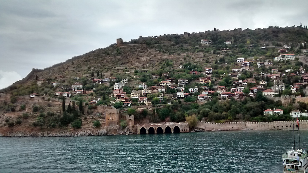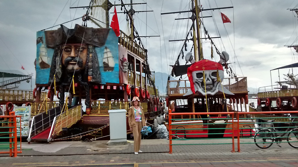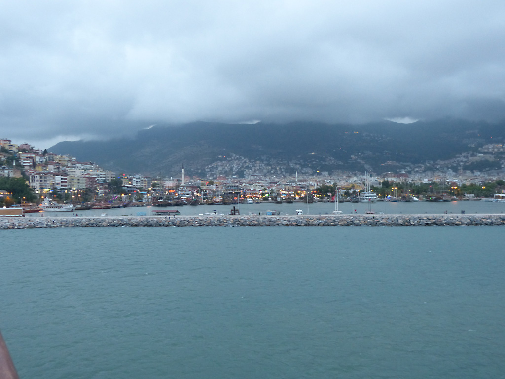 Alanya is an old pirate stronghold. There are lots of pirate-like sight-seeing boats along the quay. A little threat of rain in mid-morning when we went ashore.