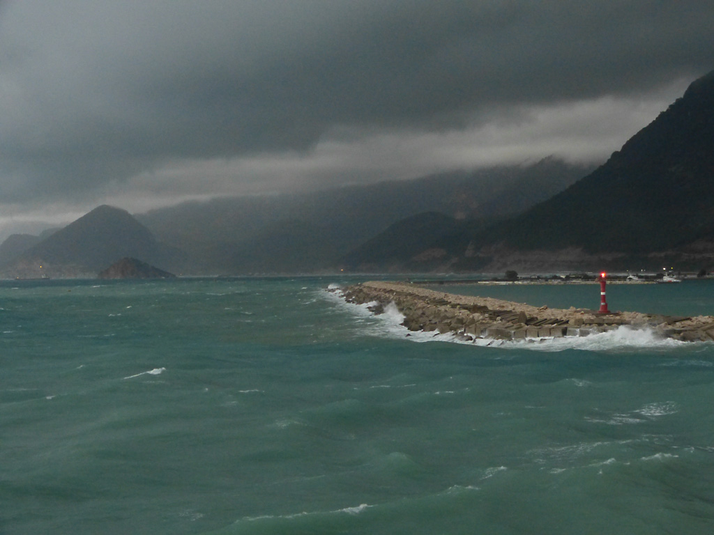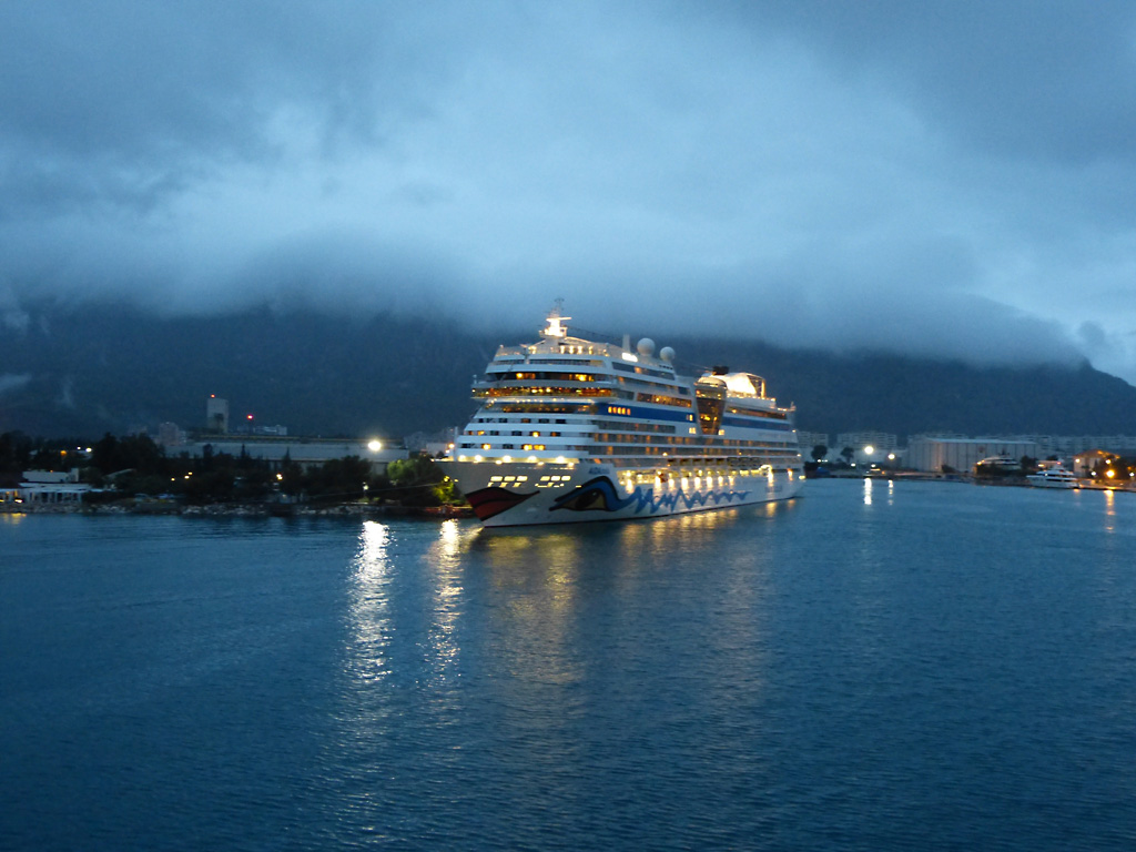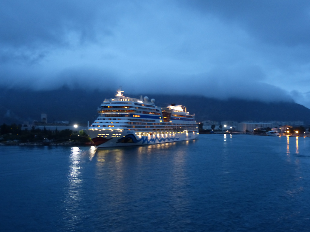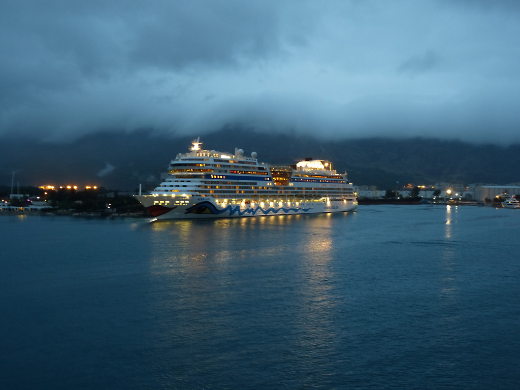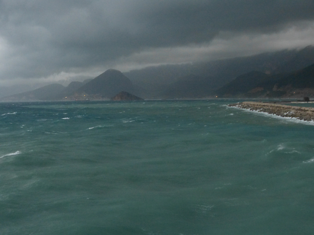We sailed for Rhodes at 5:30 P.M. and Captain Pontillo announced that heavy weather was expected tonight from 11:00 P.M. to 4:00 A.M. This was not a good evening for me. I ordered the recommended green apples, rolls and ginger ale and weathered (pun intended) the storm in bed as you can see from Bob’s gallery below.