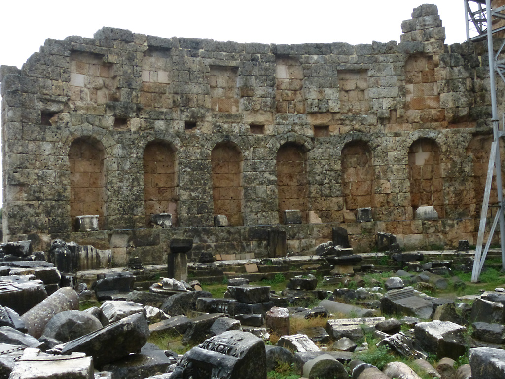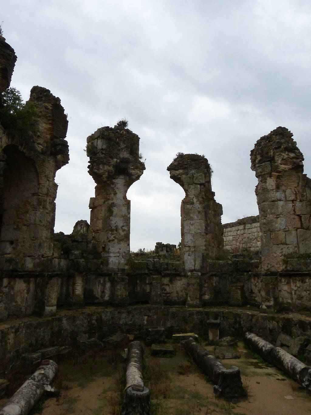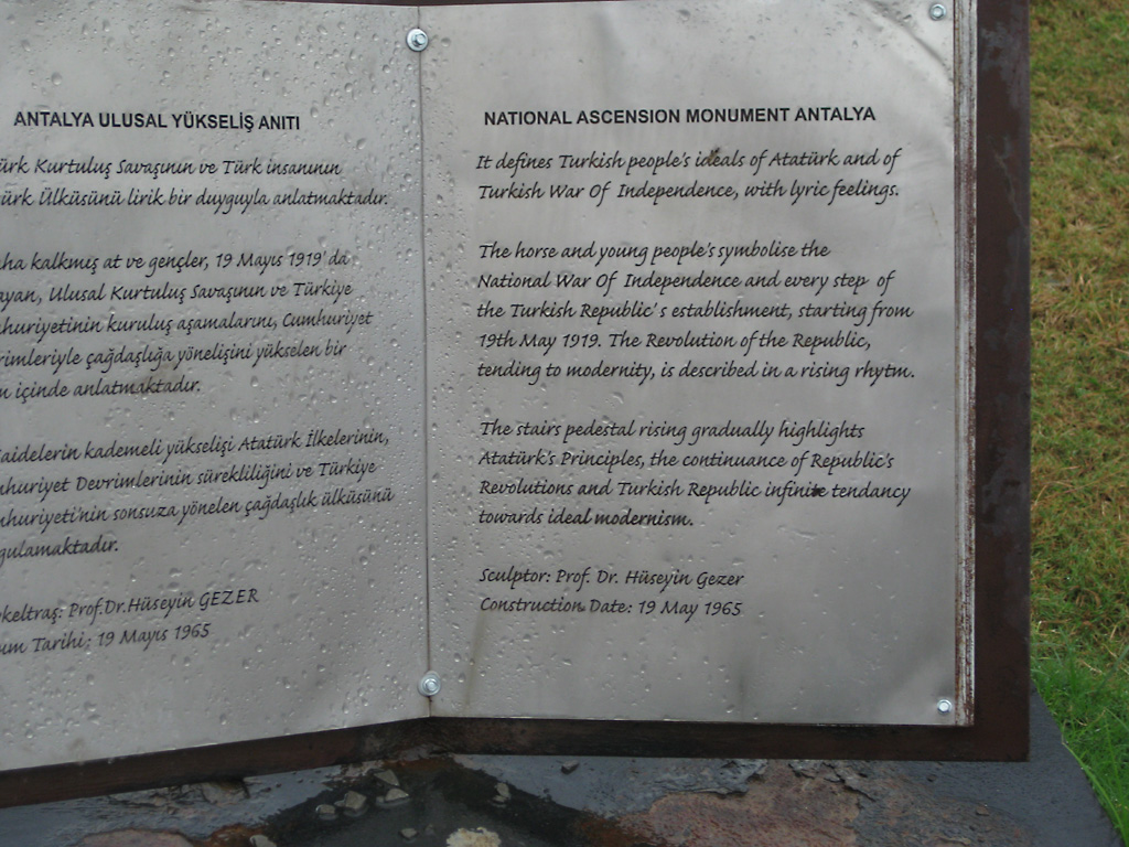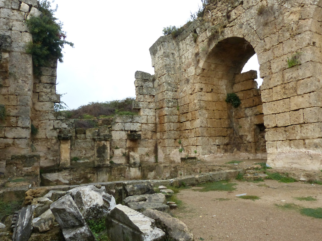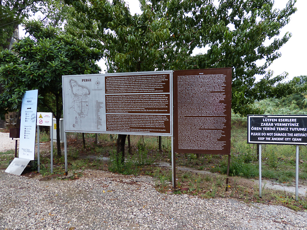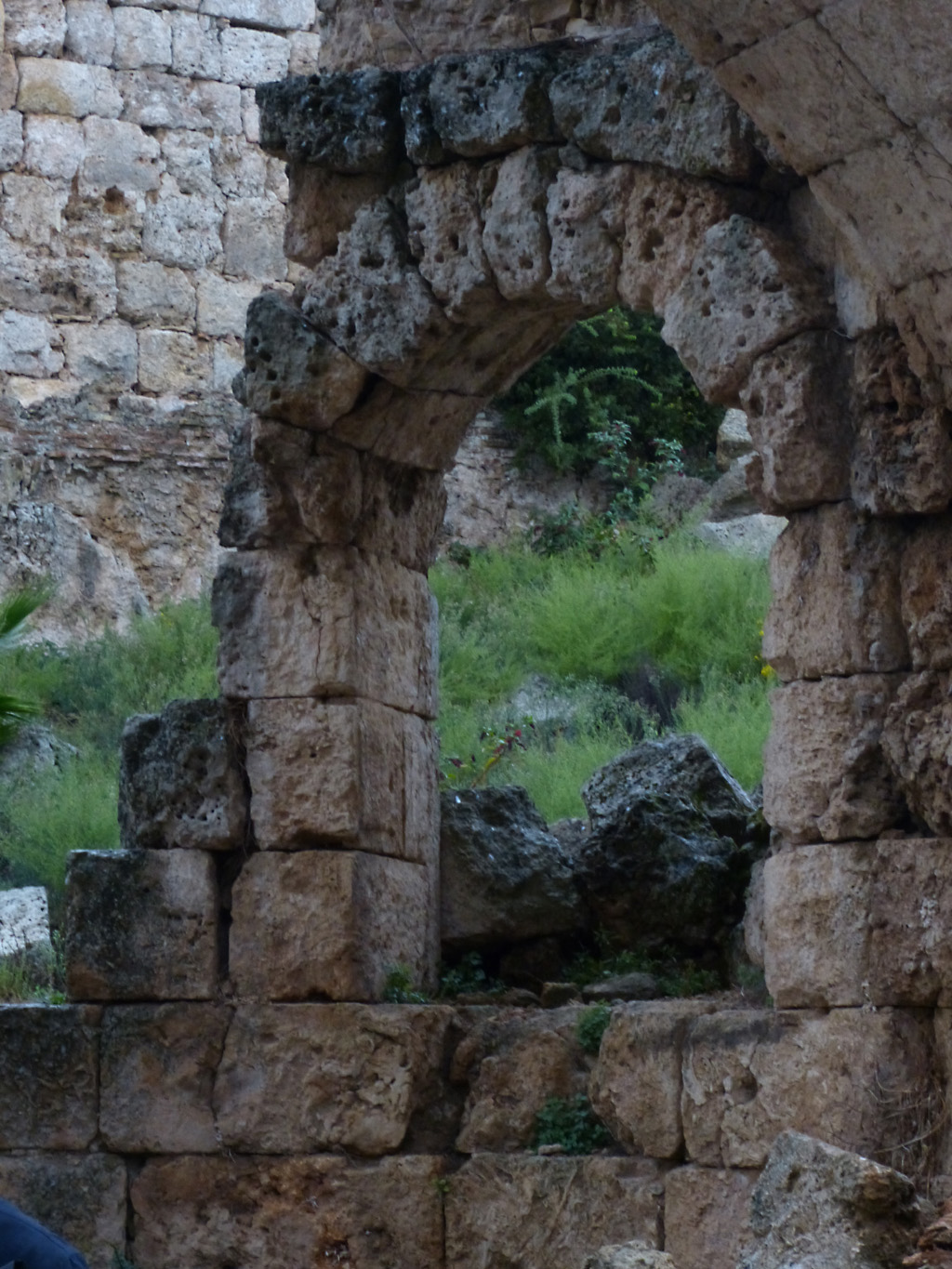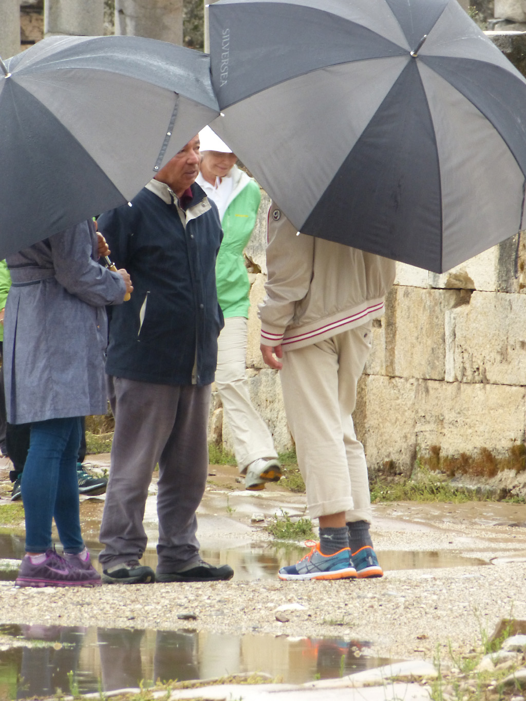 After a leisurely breakfast together Bob and I took the shuttle bus which leaves every half hour from the ship to the town. Took an umbrella but didn’t have much rain until we returned and then had quite a storm all afternoon. Antalya is a modern city with an old town at the lower level. There are minarets all over and many mosques as well. There is a clock tower and fortress ruins all about. In the upper city there were traffic-free walking streets; great for shopping. Another feature was an Istanbul bazaar-like shopping complex of streets in which you can easily get lost. Can you think of a better place to be lost? Bob bought some spices from a colorfully displayed spice shop–he’s the chef in our abode.