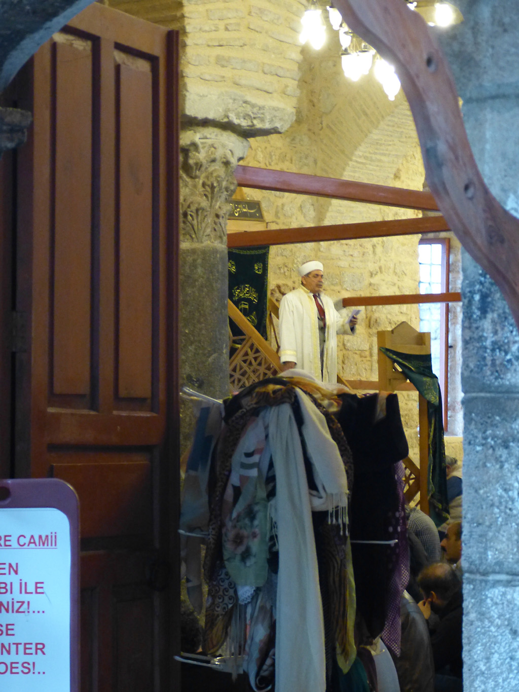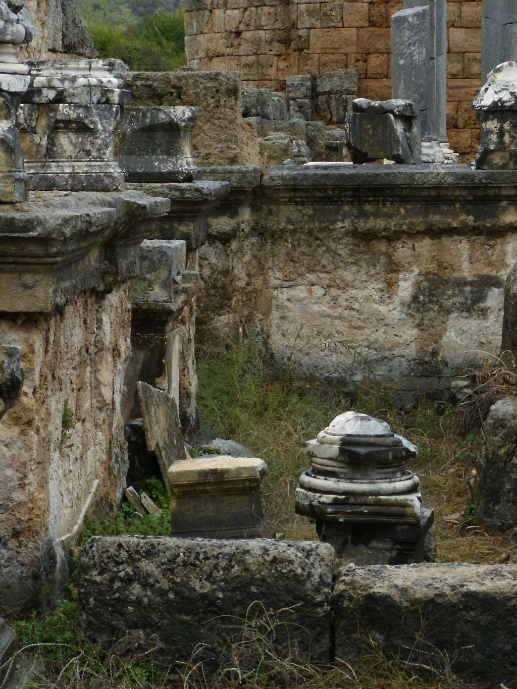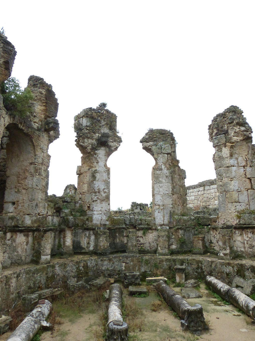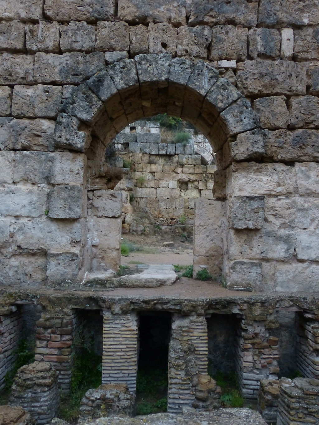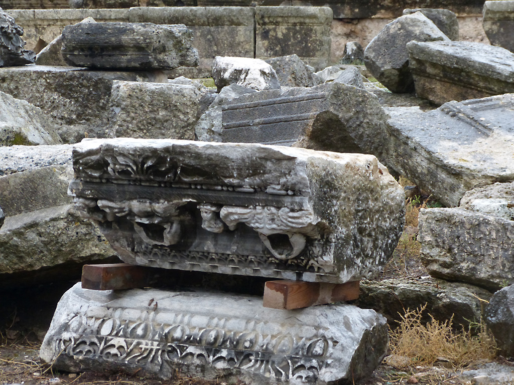 After a leisurely breakfast together Bob and I took the shuttle bus which leaves every half hour from the ship to the town. Took an umbrella but didn’t have much rain until we returned and then had quite a storm all afternoon. Antalya is a modern city with an old town at the lower level. There are minarets all over and many mosques as well. There is a clock tower and fortress ruins all about. In the upper city there were traffic-free walking streets; great for shopping. Another feature was an Istanbul bazaar-like shopping complex of streets in which you can easily get lost. Can you think of a better place to be lost? Bob bought some spices from a colorfully displayed spice shop–he’s the chef in our abode.