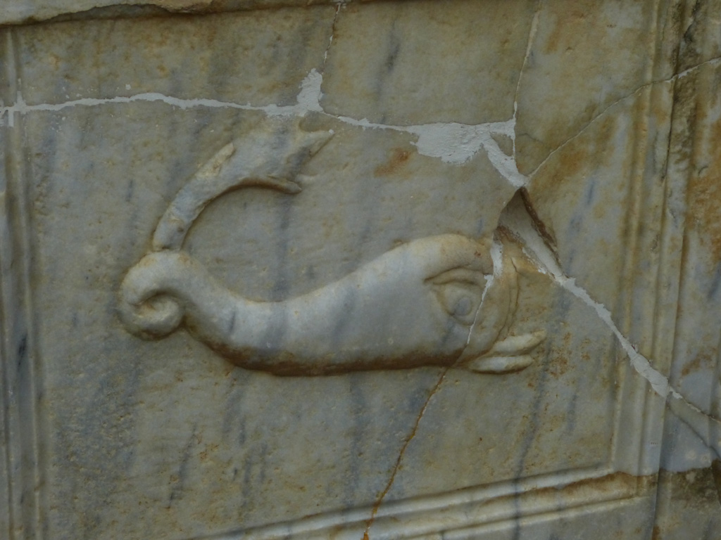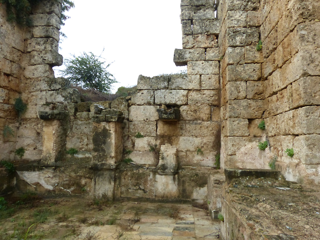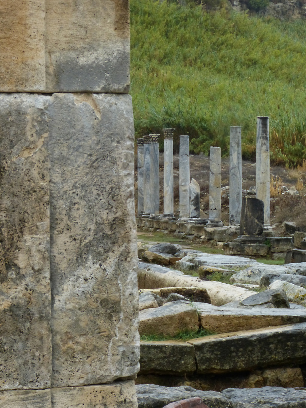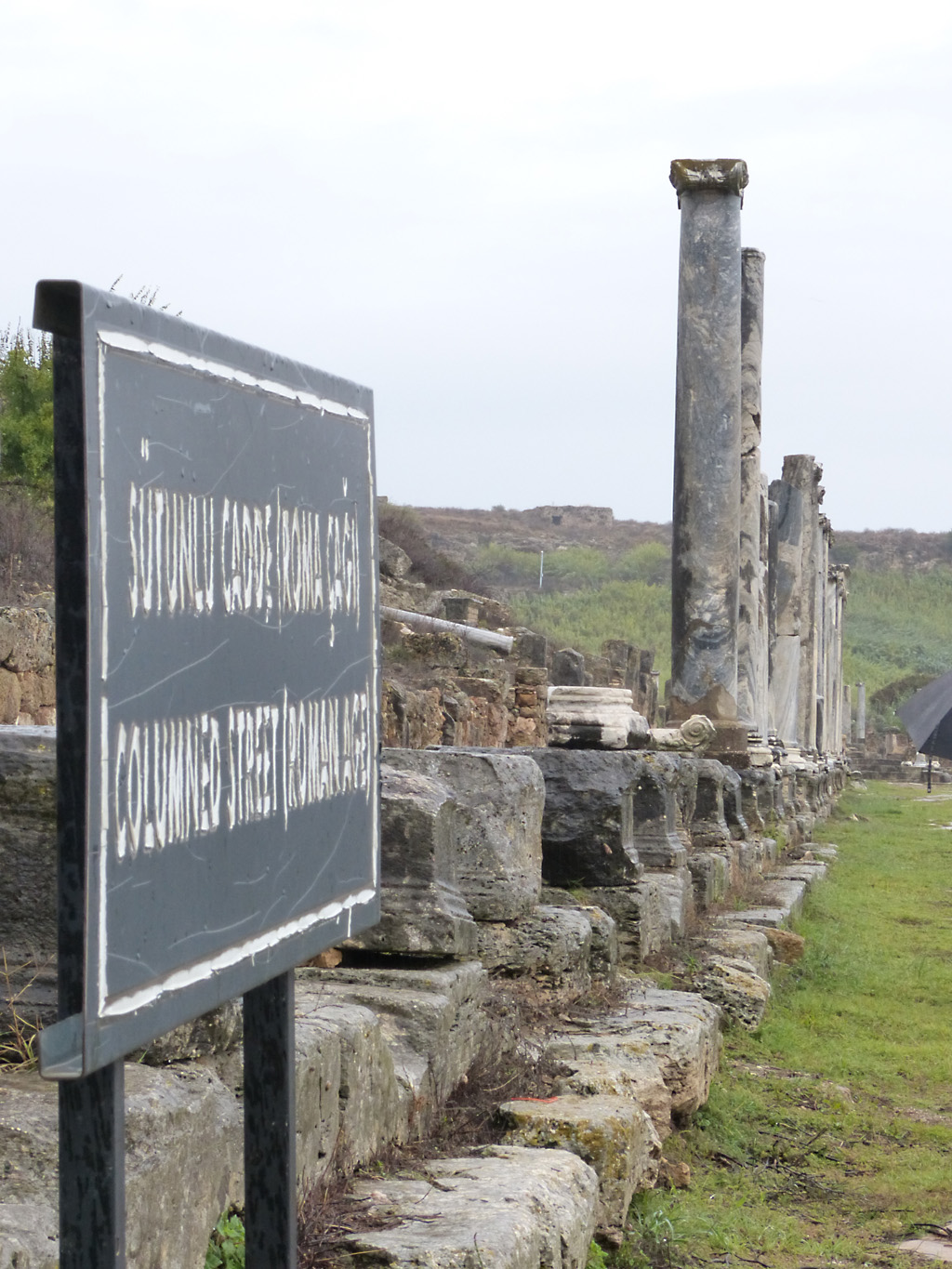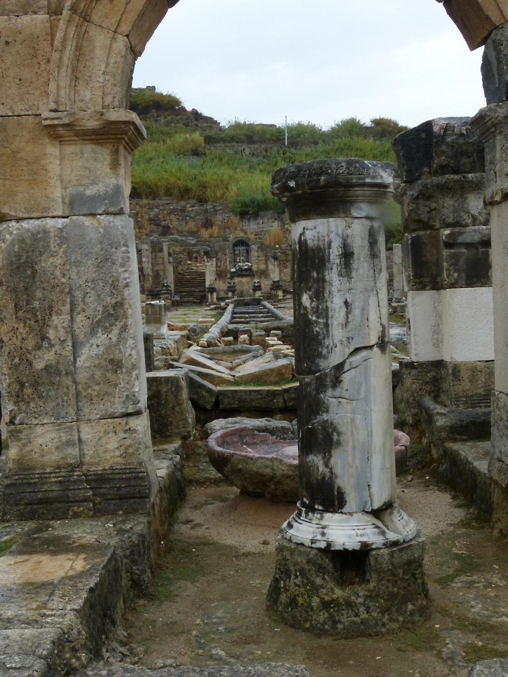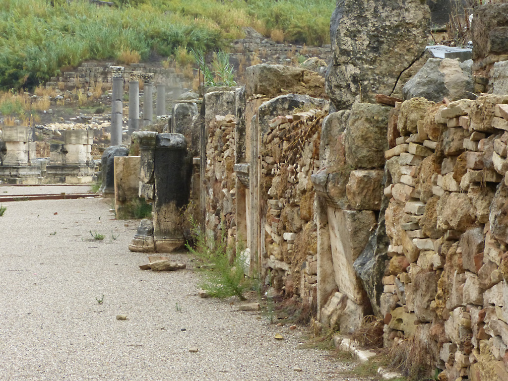 After a leisurely breakfast together Bob and I took the shuttle bus which leaves every half hour from the ship to the town. Took an umbrella but didn’t have much rain until we returned and then had quite a storm all afternoon. Antalya is a modern city with an old town at the lower level. There are minarets all over and many mosques as well. There is a clock tower and fortress ruins all about. In the upper city there were traffic-free walking streets; great for shopping. Another feature was an Istanbul bazaar-like shopping complex of streets in which you can easily get lost. Can you think of a better place to be lost? Bob bought some spices from a colorfully displayed spice shop–he’s the chef in our abode.
