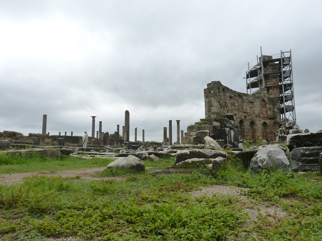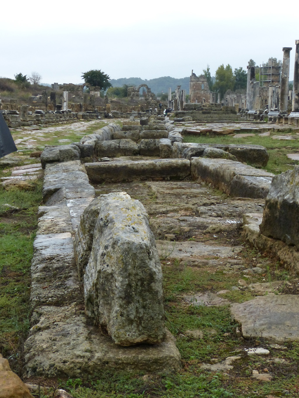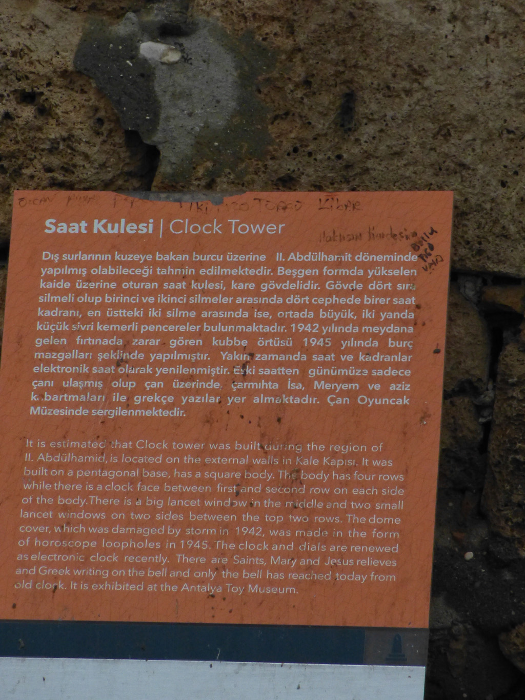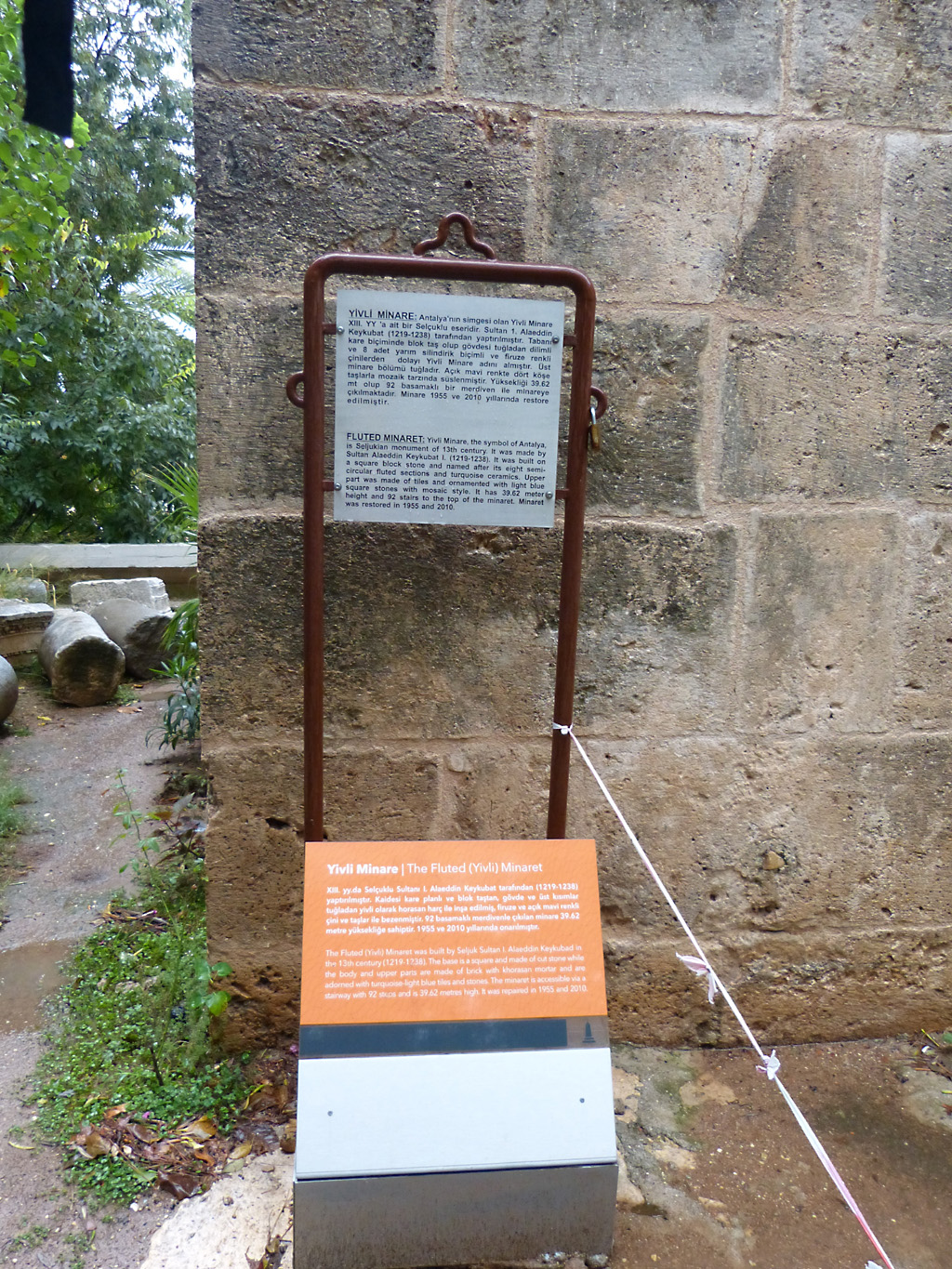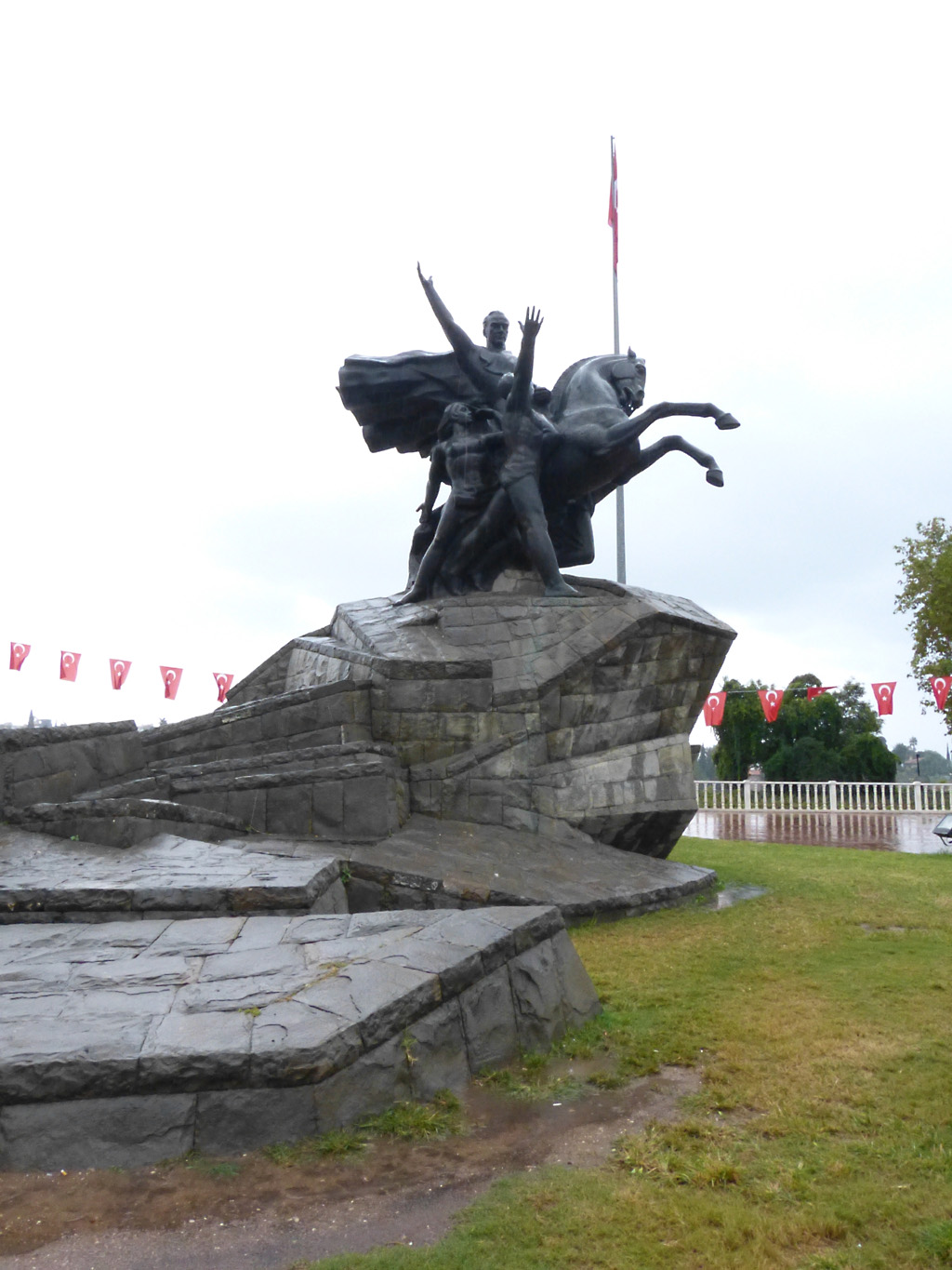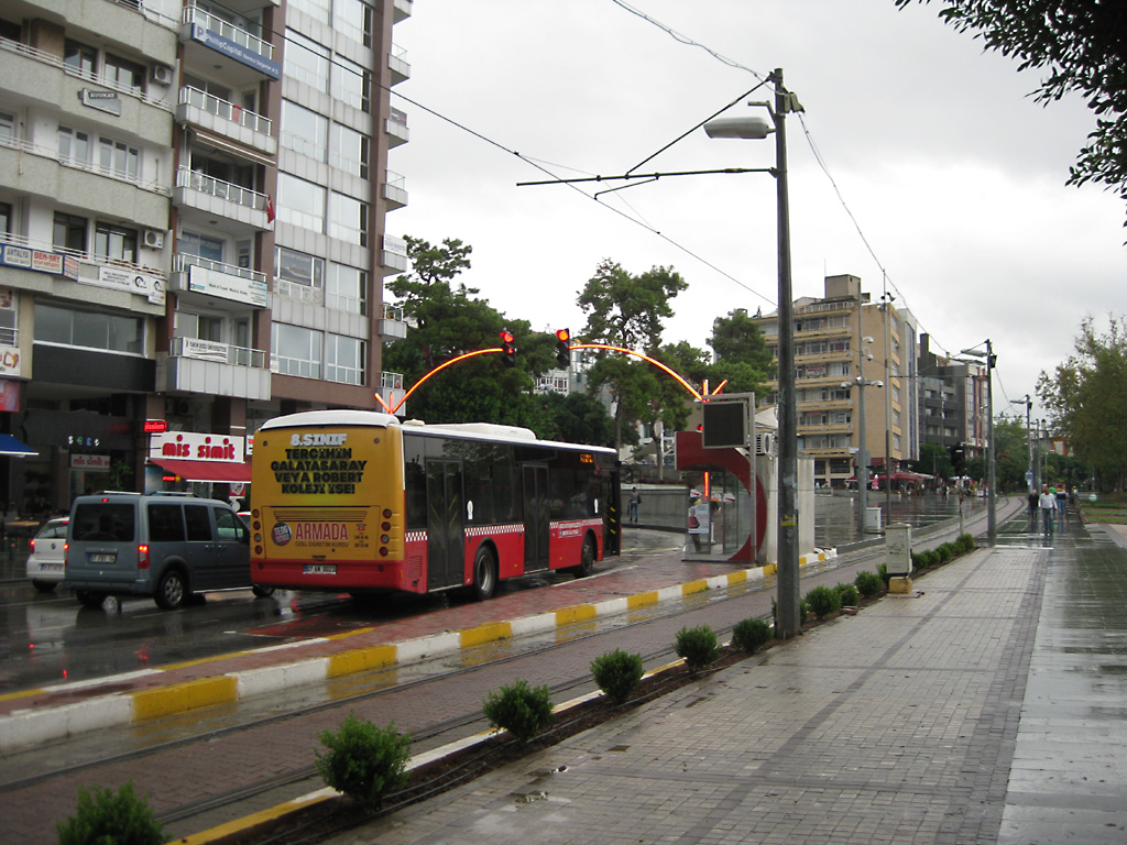 After a leisurely breakfast together Bob and I took the shuttle bus which leaves every half hour from the ship to the town. Took an umbrella but didn’t have much rain until we returned and then had quite a storm all afternoon. Antalya is a modern city with an old town at the lower level. There are minarets all over and many mosques as well. There is a clock tower and fortress ruins all about. In the upper city there were traffic-free walking streets; great for shopping. Another feature was an Istanbul bazaar-like shopping complex of streets in which you can easily get lost. Can you think of a better place to be lost? Bob bought some spices from a colorfully displayed spice shop–he’s the chef in our abode.