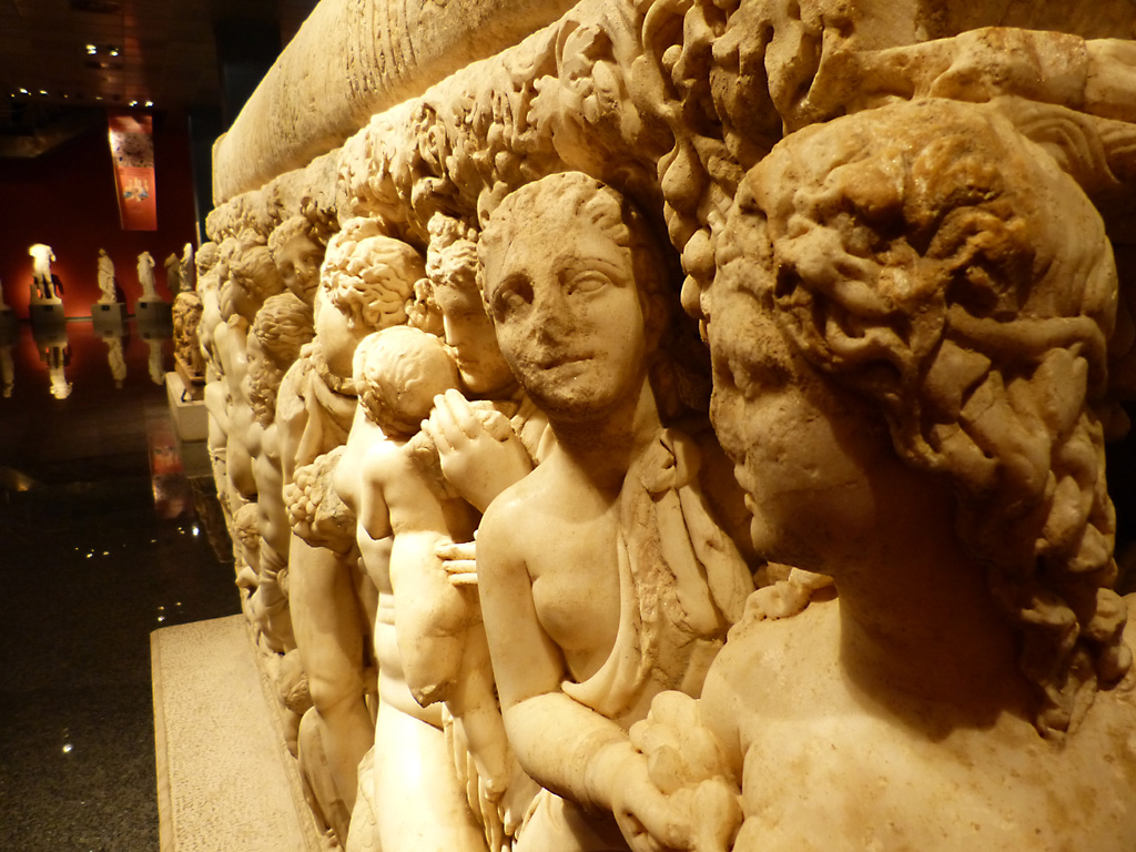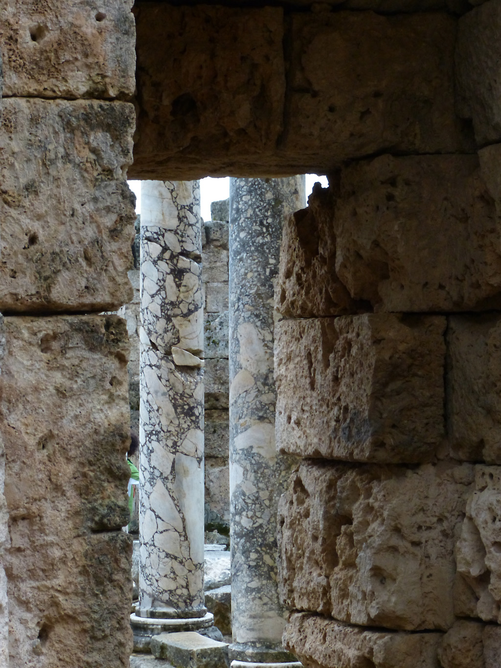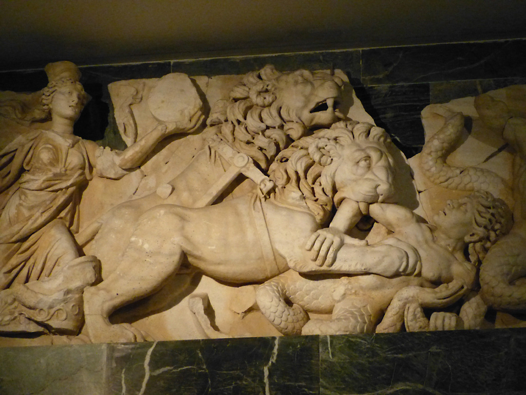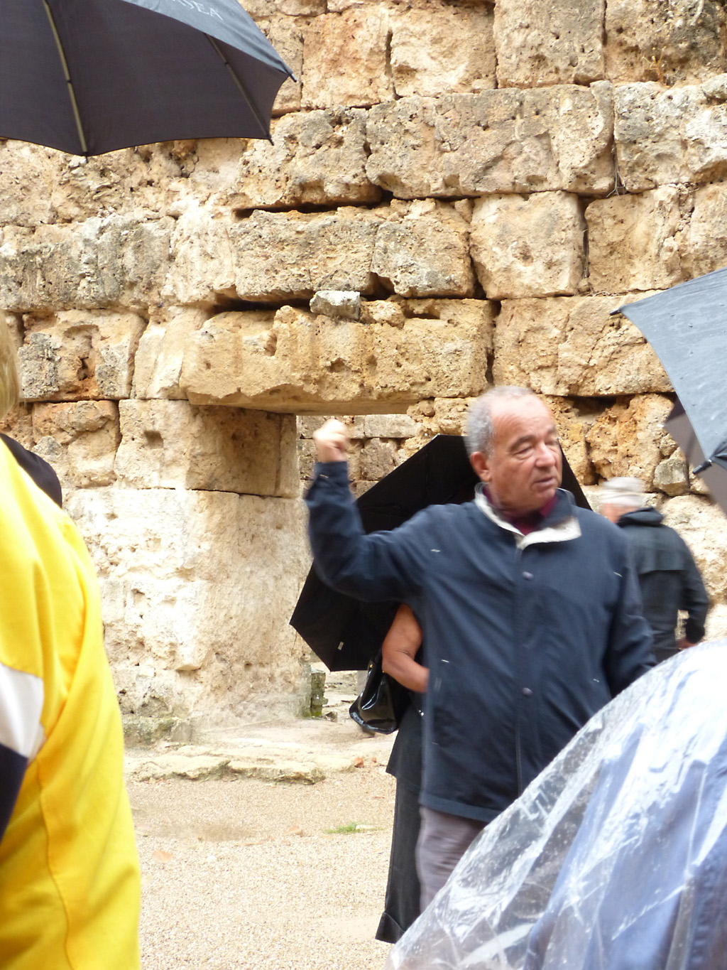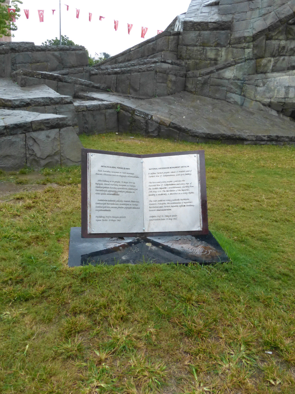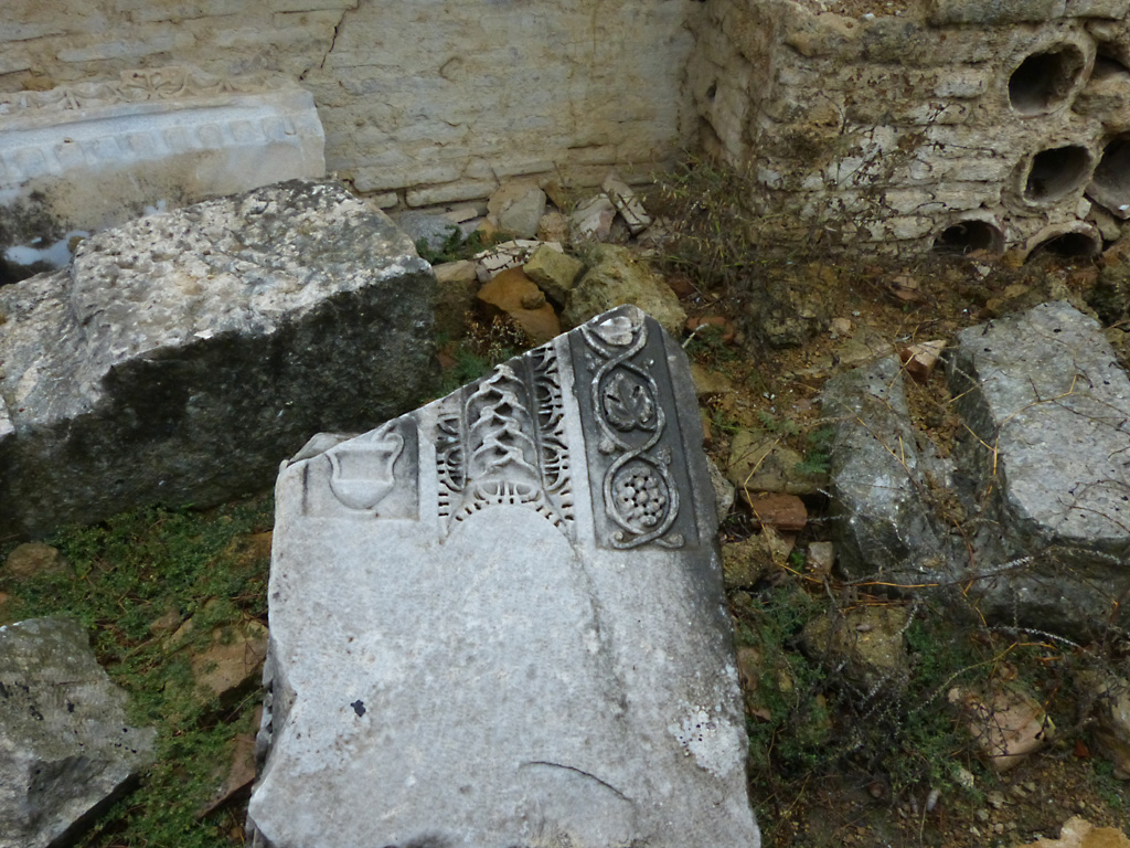 After a leisurely breakfast together Bob and I took the shuttle bus which leaves every half hour from the ship to the town. Took an umbrella but didn’t have much rain until we returned and then had quite a storm all afternoon. Antalya is a modern city with an old town at the lower level. There are minarets all over and many mosques as well. There is a clock tower and fortress ruins all about. In the upper city there were traffic-free walking streets; great for shopping. Another feature was an Istanbul bazaar-like shopping complex of streets in which you can easily get lost. Can you think of a better place to be lost? Bob bought some spices from a colorfully displayed spice shop–he’s the chef in our abode.