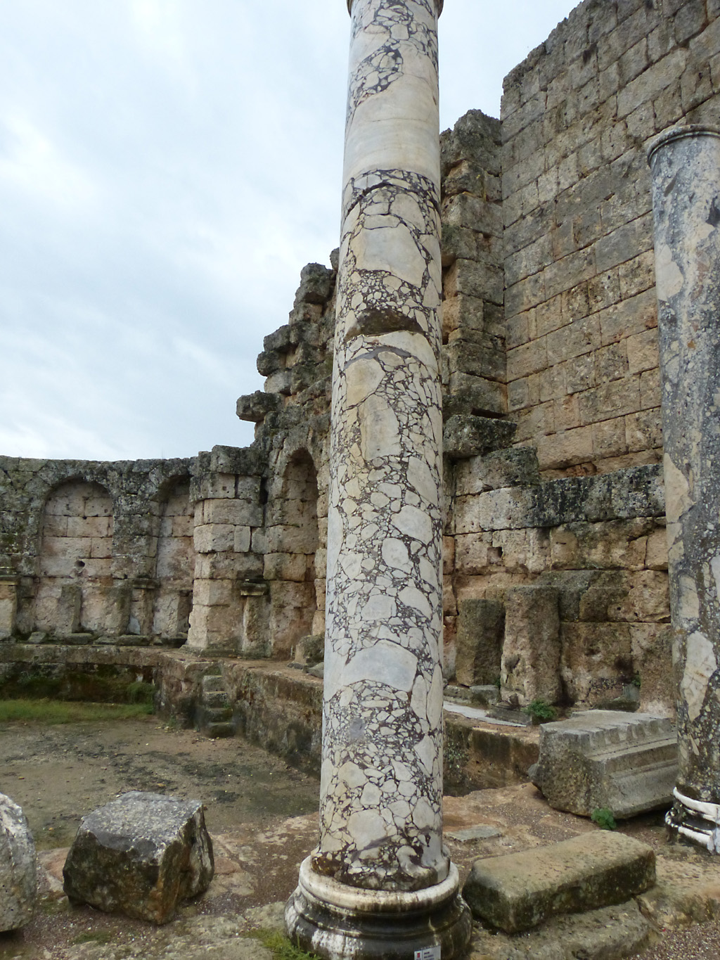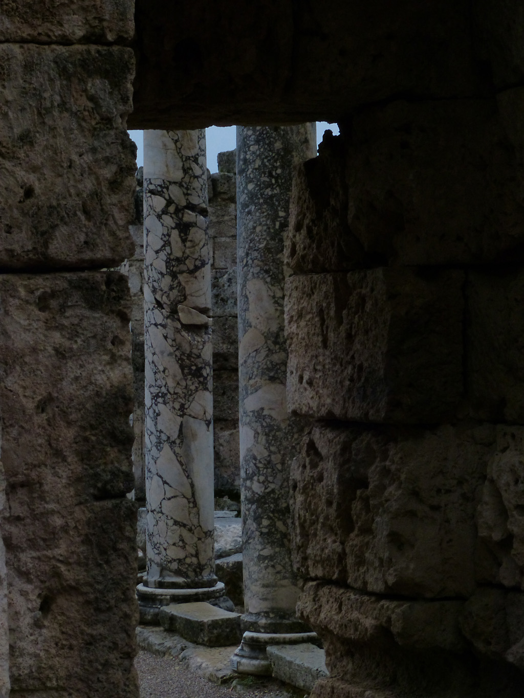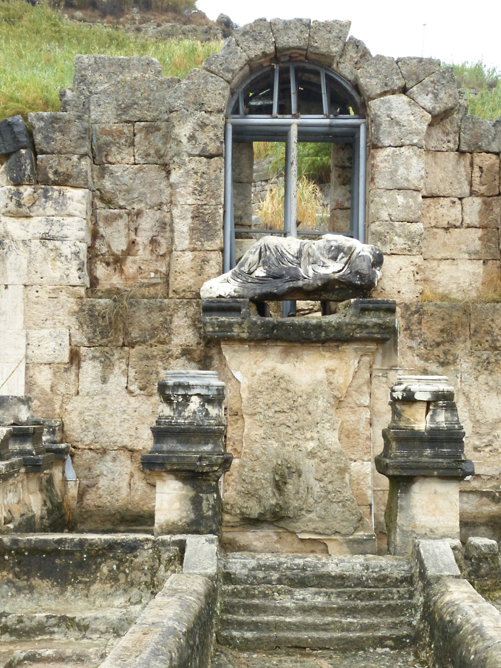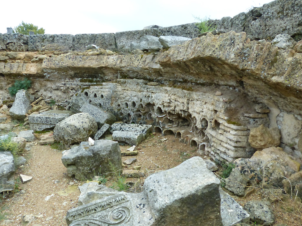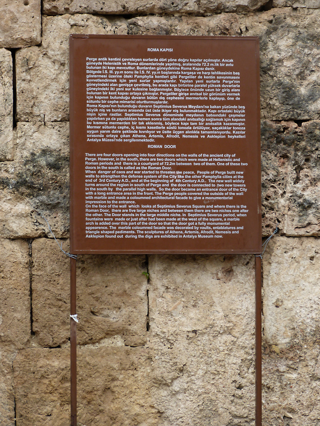 After a leisurely breakfast together Bob and I took the shuttle bus which leaves every half hour from the ship to the town. Took an umbrella but didn’t have much rain until we returned and then had quite a storm all afternoon. Antalya is a modern city with an old town at the lower level. There are minarets all over and many mosques as well. There is a clock tower and fortress ruins all about. In the upper city there were traffic-free walking streets; great for shopping. Another feature was an Istanbul bazaar-like shopping complex of streets in which you can easily get lost. Can you think of a better place to be lost? Bob bought some spices from a colorfully displayed spice shop–he’s the chef in our abode.